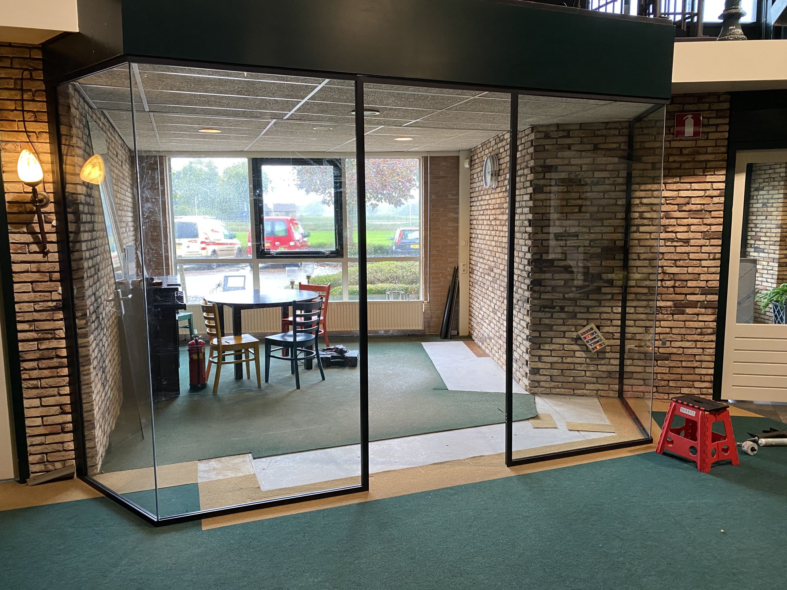 25 mei 2021 Glaswanden Zwarte profielen 0 Voor wat extra privacy is hier gekozen om een glaswand met roedes onder een koof te plaatsen. Deze roedes worden later op het glas geplakt om de gewenste vakverdeling te verkrijgen, de basis is altijd een glaswand. Informatie aanvragen Van welk materiaal maken wij onze wanden(denk eenvoudig) Prev Next Leave a comment Reactie annuleren Mijn naam, e-mail en site opslaan in deze browser voor de volgende keer wanneer ik een reactie plaats. Send Comment